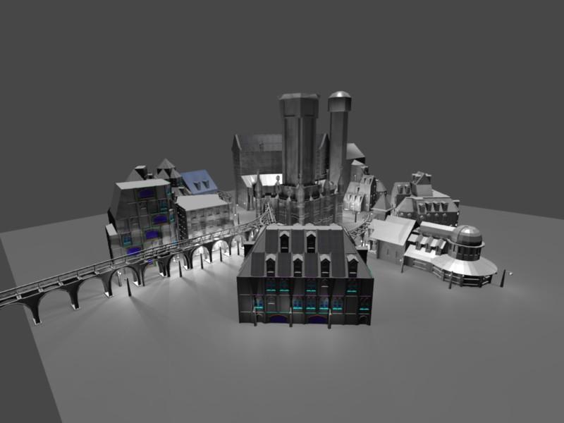 Modeling on the lovelace city is nearing completion, all the buildings are in a "release ready" stage with only textures needing to be worked on. You can see the progress on the city below.